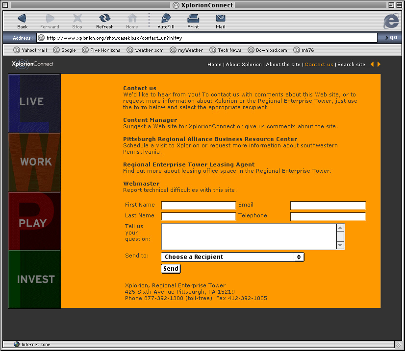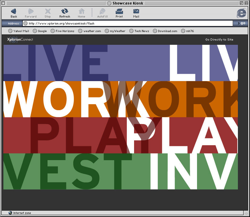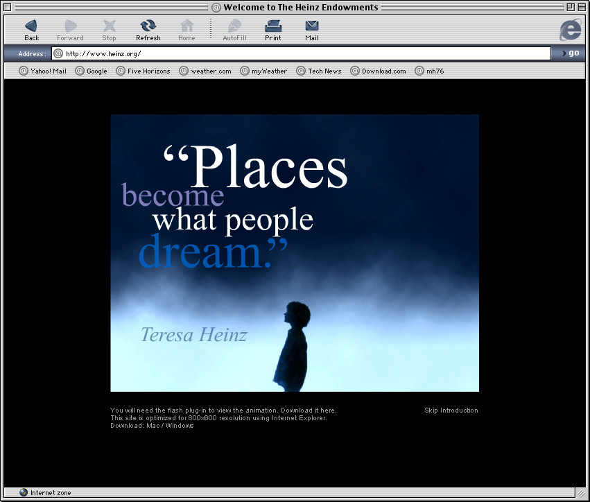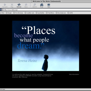 Spent a couple years at a design firm in Pittsburgh, Agnew Moyer Smith (AMS). Probably the job where I learned the most from the people around me. Some really talented people there, especially exciting since we were all learning how to create online spaces for companies and organizations of all kinds. Circa 2000-2002. Gallery is a collection of websites, flash animations, flash interfaces for physical installations. Worked on a lot of neat projects in those two years.