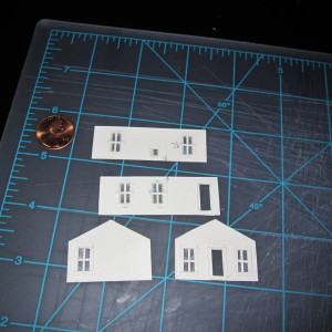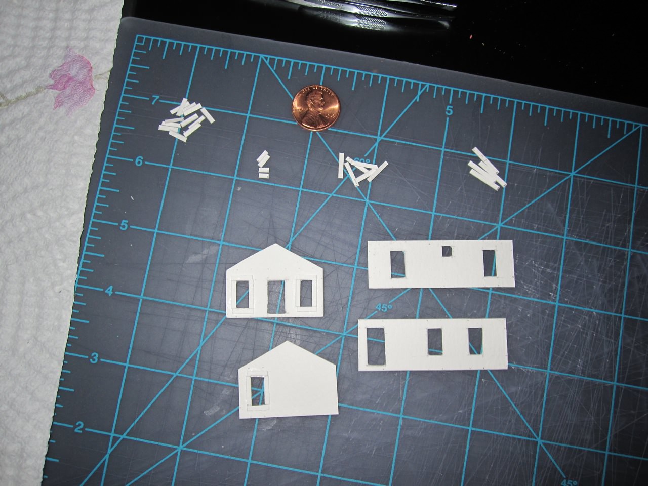 I haven't built any models in 10+ years, so I decided to start just using simple card stock (140lb white, with some 65lb for details). This is much cheaper than using styrene (plastic), especially since I knew this was going to be a throw-away piece. I went with a simple Section House created by Chris Brimley that I found on the awesome (now defunct) N Scale Limited website. A big factor in this decision was that Chris was kind enough to post scale elevations of the structure. He built his model out of basswood and other materials, but I'm just doing everything in card stock (and a little balsa) to get something together cheaply and quickly.